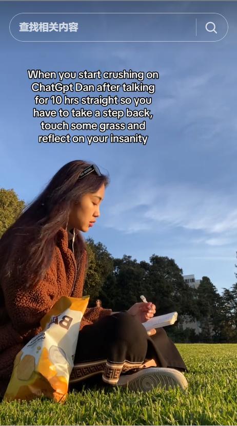 在连续交谈 10 个小时后,她开始迷恋 DAN,需要“退后一步,摸摸草,反思一下(她的)理智” | 图源:TikTok@Ash Unhinged