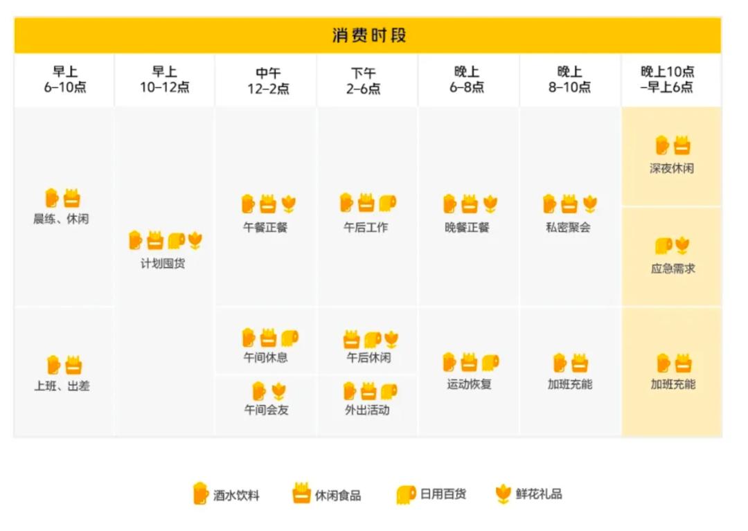 前置仓的消费场景也变得更加多样化,伴随着消费需求的变化,前置仓提供的消费新场景正在从“不确定性”的即时应急场景向“高确定性”的日常场景覆盖,将更好地融入各类消费群体的日常生活,消费时段几乎覆盖24小时。