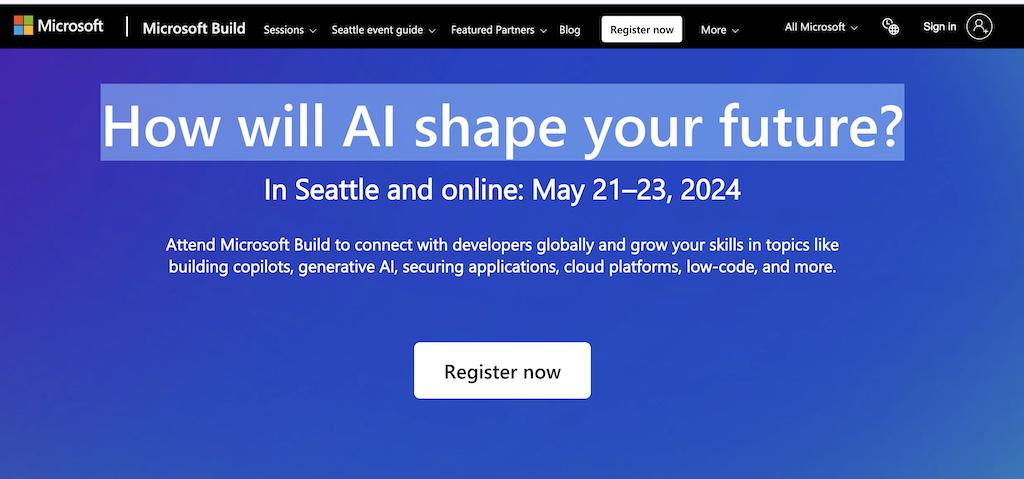 下周,北京时间 5 月 22 日凌晨,AI 的另一大玩家微软,即将在西雅图举办 Hybrid:Microsoft Build 大会。官方网页上大大的「How will AI shape your future?」,强调了本次大会的主题。