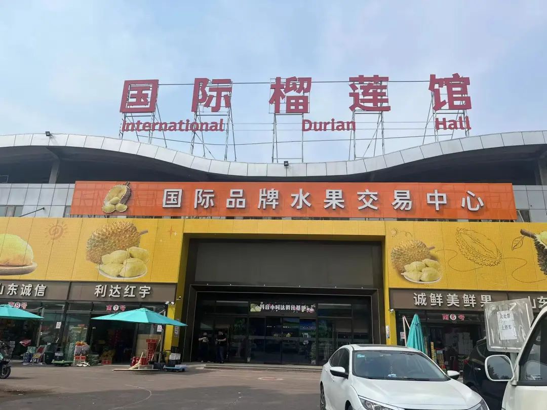 位于新发地国际榴莲交易中心场馆里,一处不起眼的榴莲摊位上,这里刚结束一场直播。