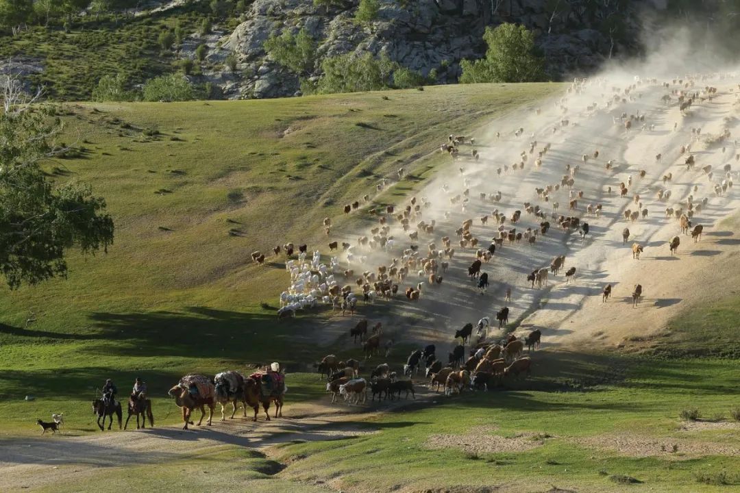 每一年,阿勒泰的哈萨克族人在春牧场接羔,然后抱着刚刚出生的羊羔,赶着羊群、牛群、马群、骆驼和牧羊犬,追逐雪线北上,到高山草原放牧;秋天,他们在大雪的驱赶下拔营转场,到秋牧场催秋膘、给牧畜配种;最后,抵达冬牧场过冬,让怀孕的动物们躲过一年最严酷的风雪。如此往复,每年至少迁徙4次,路途少则数百公里,多则上千公里。