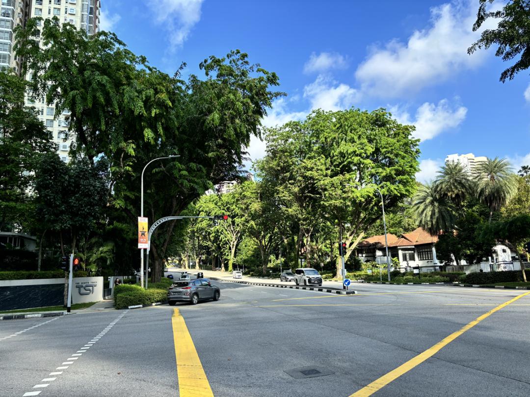 上午9点多,新加坡一处丁字路口,根本没几辆车!马路上的空旷感,和春节期间人都走空了的北京城差不多。
