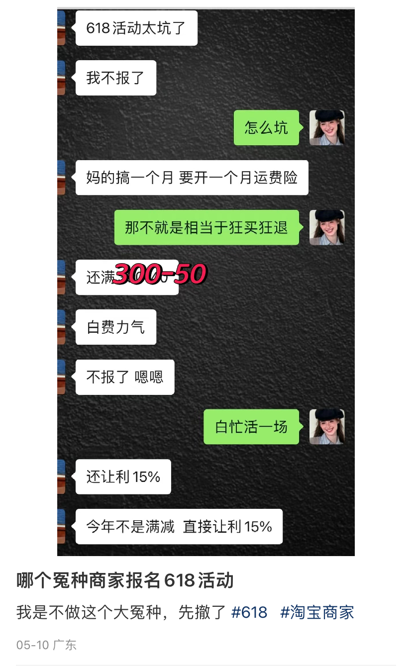 会后有商家针对运费险、商家让利15%以及发货时间等规则发文吐槽,表示不会报名参加这次的活动,言语间表达了对平台的不满。这篇文章引起了众多商家的共鸣,评论区直接炸了锅。