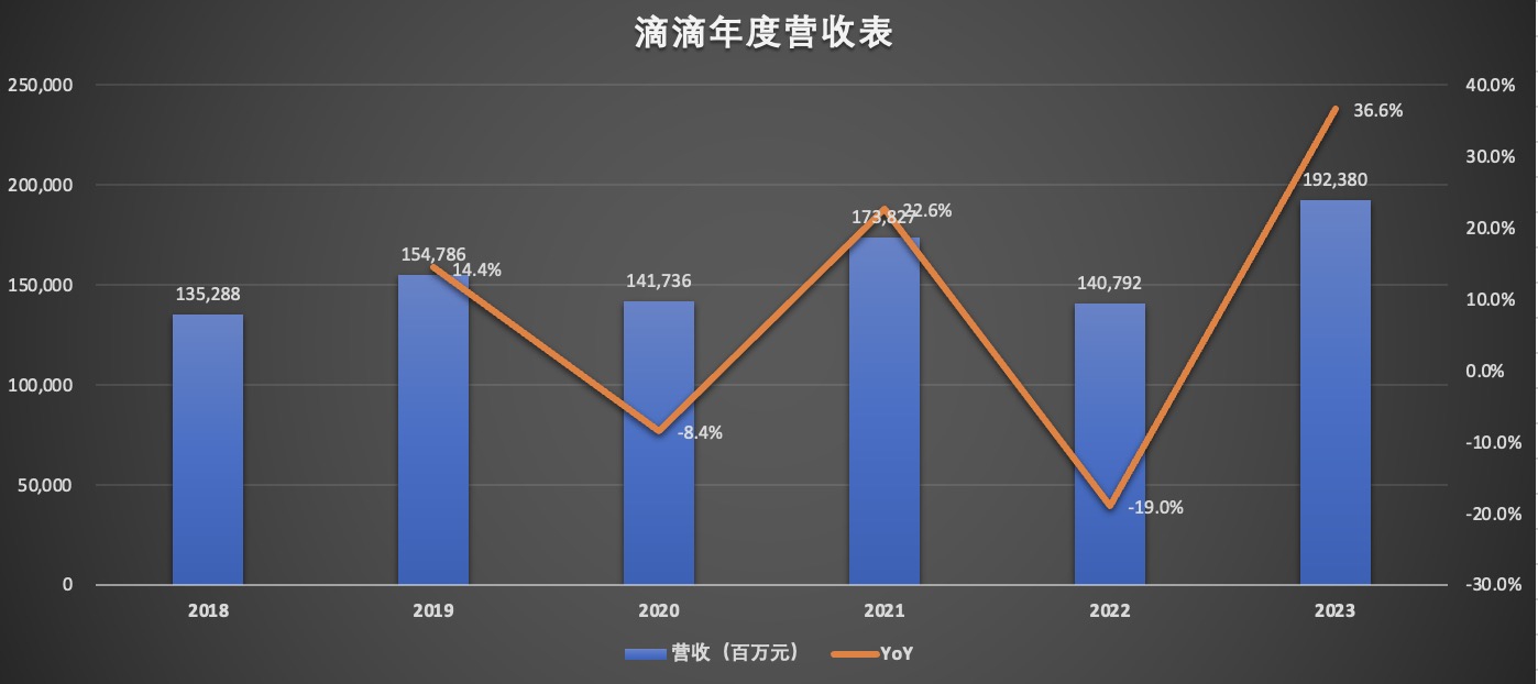 当前,滴滴各项业务正在逐步恢复增长。2023年全年营收同比增长36.6%至1924亿元。财报显示,2023年第四季度,滴滴实现收入494亿元,同比增长55.4%。2023年全年营收同比增长36.6%至1924亿元。