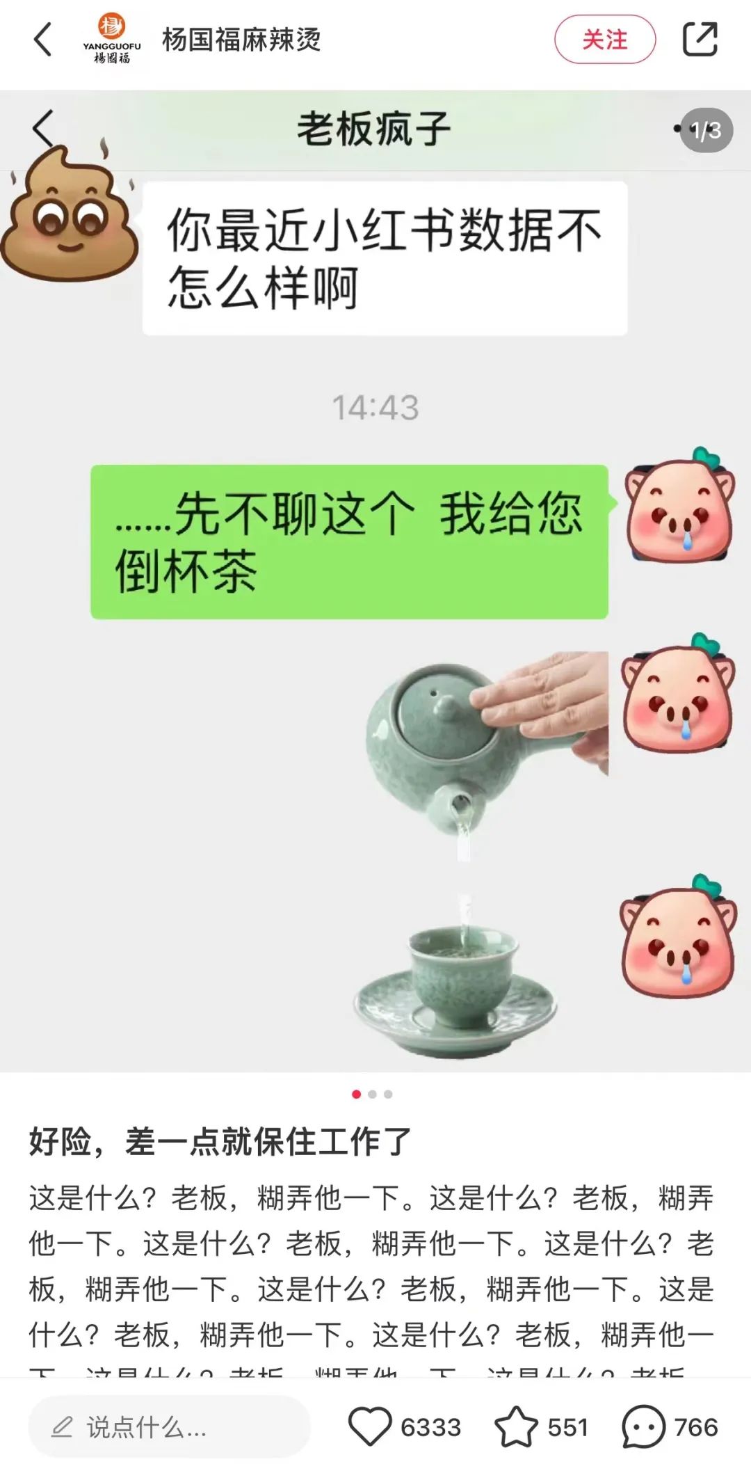 面对老板“小红书数据不怎么样”的灵魂质问时,杨国福麻辣烫运营看似卑微地“老板请喝茶”,却将真情流露在微信备注和头像贴纸上,可谓深谙糊弄学。