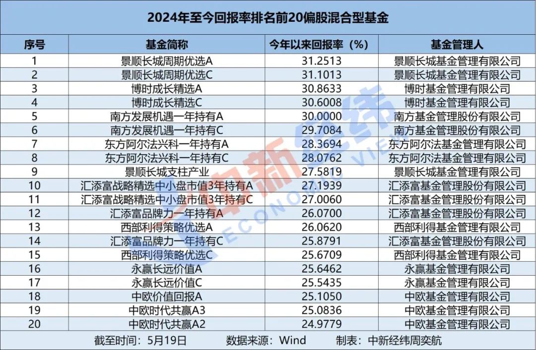 具体来看,景顺长城周期优选A年内收益率31.25%,在一众基金中位列榜首;博时成长精选A次之,今年以来回报率为30.86%;除上述两只基金外,包括南方发展机遇一年持有、汇添富战略精选中小盘市值三年持有以及东方阿尔法兴科一年持有等105只基金在内,今年回报率超过20%。