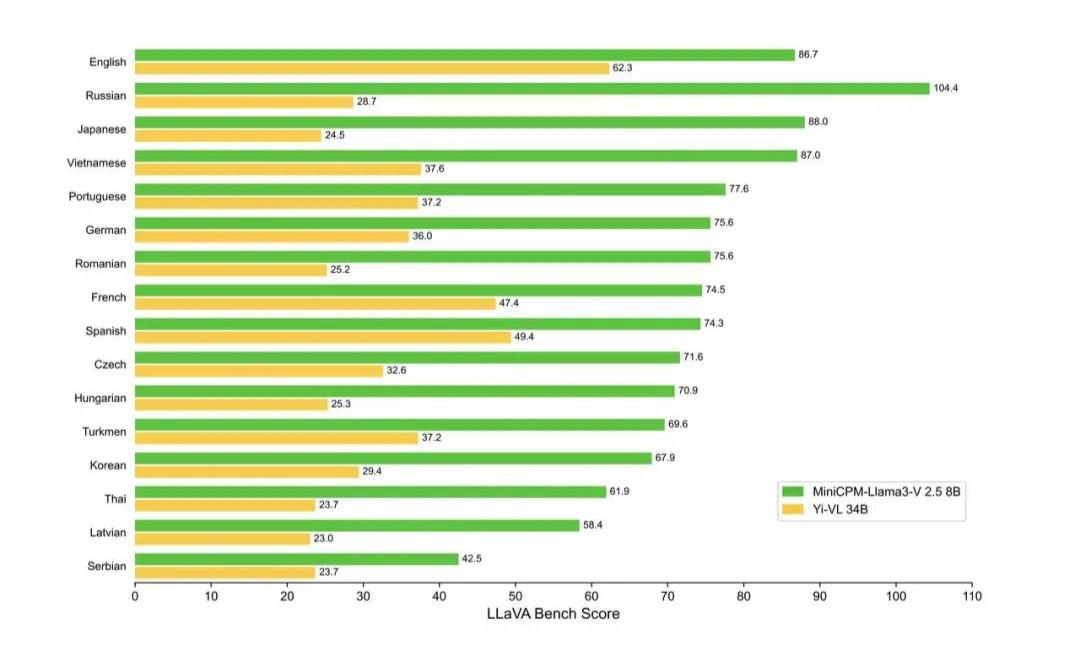 现在,MiniCPM-Llama3-V 2.5 支持 30+ 种语言,涵盖德语、法语、西班牙语、意大利语、俄语等主流语言,一带一路沿线国家的语言基本做到信手拈来。