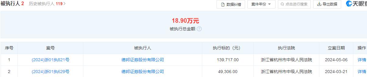 债券承销收入下滑及履行赔偿义务之后,德邦证券的净利润自2017年开始就呈现明显的下降趋势。2021年、2022年,公司更是分别出现了4.54亿元以及9094.24万元的亏损。而“五洋债”的后续影响却仍未结束,2024年,德邦证券还因赔偿问题,与陈志樟、钱志良、大信会计师事务所一起成为被执行人。