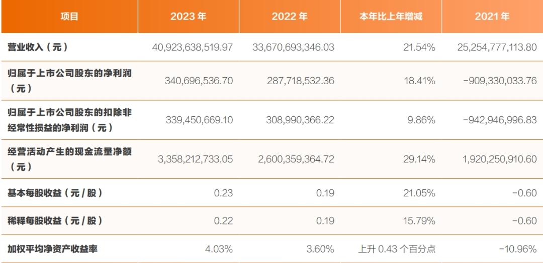 年报显示,申通快递2023年全年业务量175.07亿件,同比增长35.23%,高于行业增速15.8个百分点;全年营业收入409.24亿元,同比增长21.54%;市场占有率达13.26%,同比提升1.55个百分点,归母净利润3.41亿元,较去年同期增长18.41%。