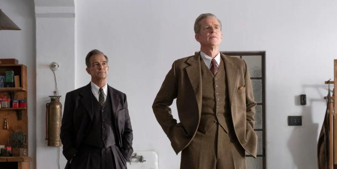 电影《奥本海默》,由Matthew Modine饰演的Vannevar Bush(右)