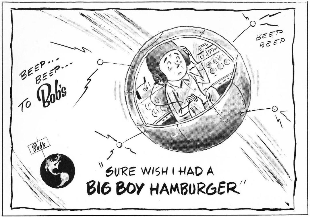 一则关于斯普特尼克号的漫画:“哔...哔...传给鲍勃(代指美国)”