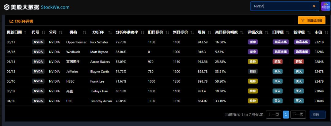 根据美股大数据Stockwe.com多家机构提高了英伟达的新目标价。目标价格范围从1100到1350美元不等,预期涨幅从19.38%到50.20%。
