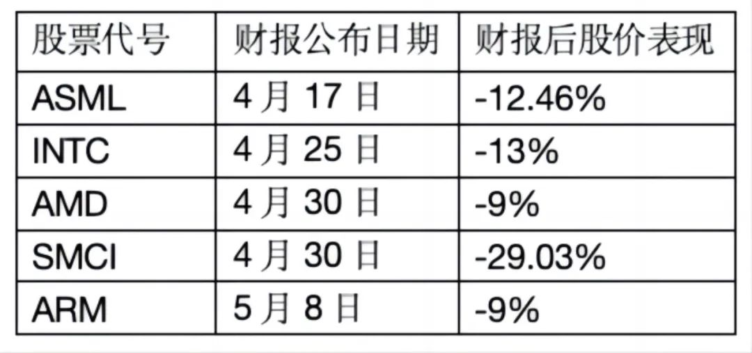 最近几周我们美股投资网发现多家顶尖科技公司的财报全部都暴雷了,其中包括ASML、英特尔、AMD、SMCI、和ARM。