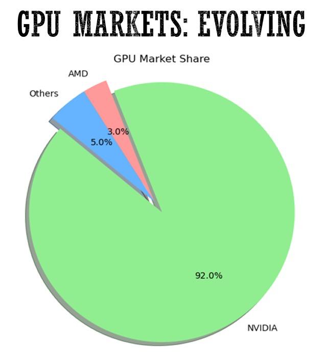 在GPU市场上,英伟达通过其技术优势牢固控制了大约92%的市场份额,而AMD只能在剩余的8%的市场中苦苦挣扎。