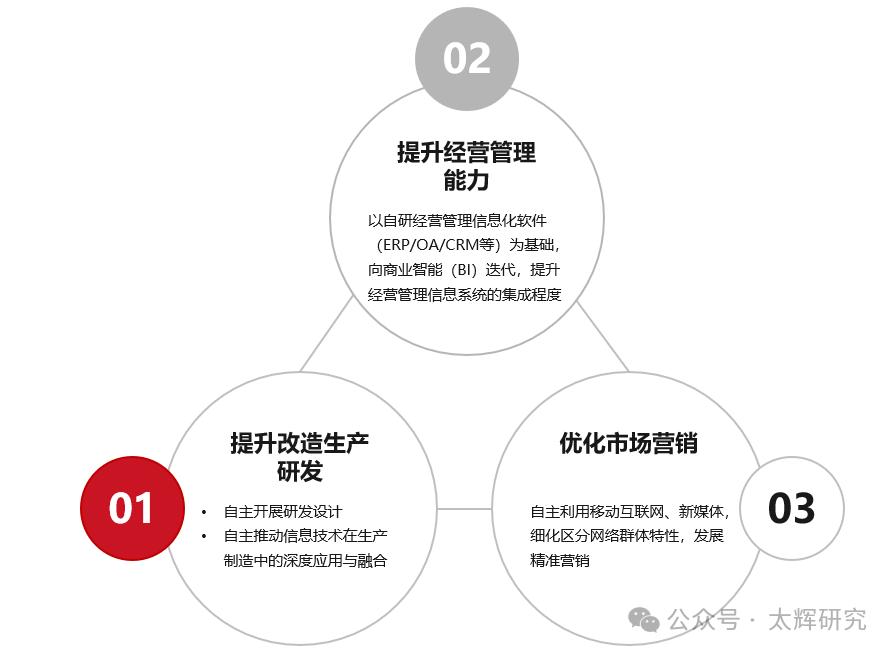 (一)以信息技术提升改造生产研发。 一方面,中小企业自主运用信息技术开展研发设计,提升创新能力,提高产品质量和附加值;发挥基于互联网的开放式研发平台作用。另一方面,中小企业自主推动信息技术在生产制造中的深度应用与融合,推进生产制造流程的柔性化改造,发展网络众包、个性化定制、服务型制造等新模式,推广服务于“智能制造”的信息化集成应用产品和解决方案,推广智能工业控制系统深度应用,促进增材制造、工业机器人、人工智能等新手段在生产过程中的应用。