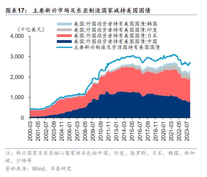 美债面临的另一个问题在于,美元是全球的美元,美债也是全球的美债,过去几十年,美债因为安全性和硬通货,成为各国储备资产的首选,如中国等在全球化中赚了大量外汇的国家,又把赚来的美元换成美债,源源不断的配置需求压低了美债利率,与大部分国家都存在“信用利差”,才能让美国以较低的成本解决疯狂增长的财政赤字问题,让美国人产生了“美债不是债”的幻觉。