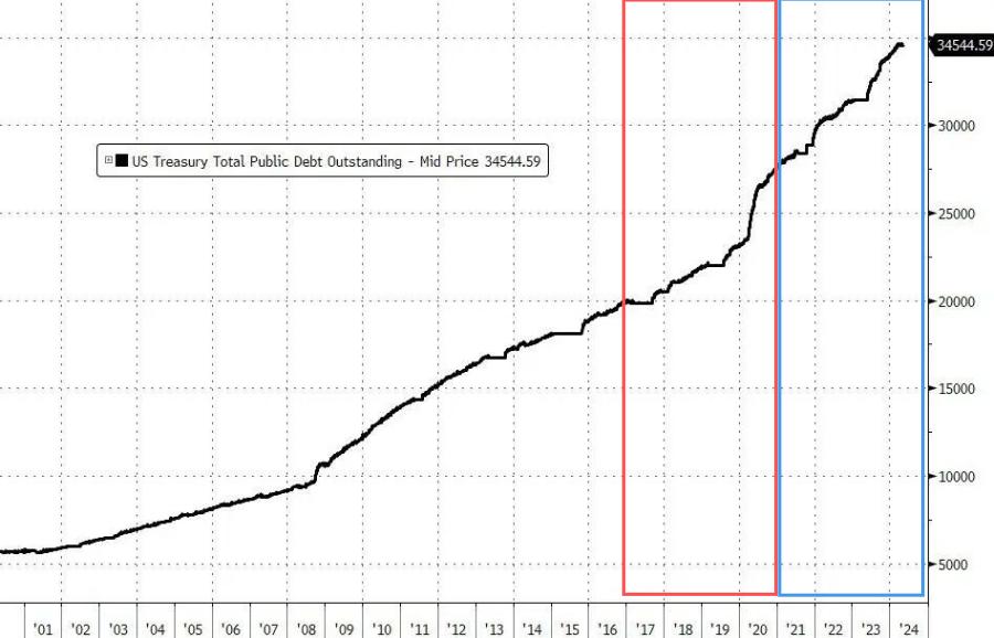 其实,共和党也是五十步笑百步,川普这4年国债增加了9万多亿,比拜登多多了。