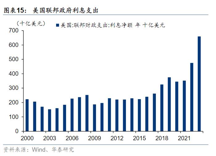美债利率是从22年才开始上升的,这一部分高息的债务占比目前不高,所以对财政的影响可控,但随着新债置换旧债,占比提高,这将是一笔越来越沉重的负担。