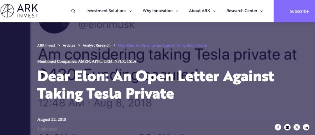 [2]Dear Elon: An Open Letter Against Taking Tesla Private, Cathie Wood