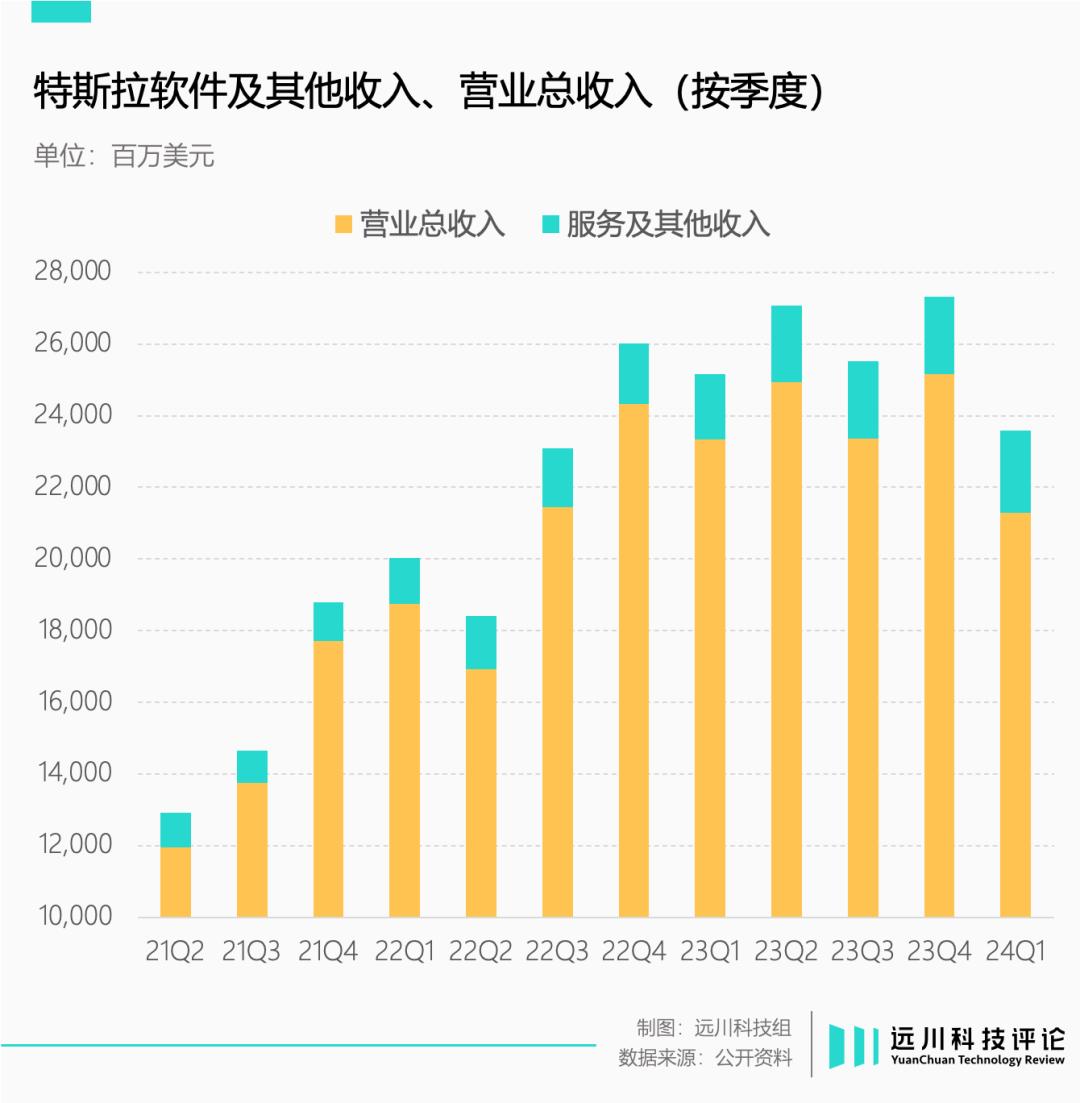 在刚刚过去的第一季度,特斯拉交出了比去年更差的成绩单。而大头汽车业务同比下降13%的前提下,FSD订阅所属“服务和其他收入”,在营收中的占比也只勉强达到了两位数。