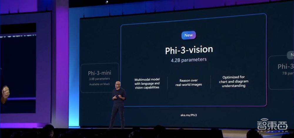 3、推出42亿参数多模态SLM(小语言模型)Phi-3-vision,支持图像理解与交互;同时提供70亿参数的Phi-3小型模型和140亿参数Phi-3中型模型,支持跨操作系统及云边端运行。