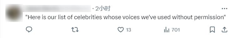 也有网友讽刺道:“这是我们未经许可使用其声音的名人名单。”