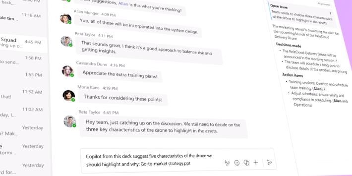 Team Copilot 可以和人类用户一起在群中工作|图片来源:微软
