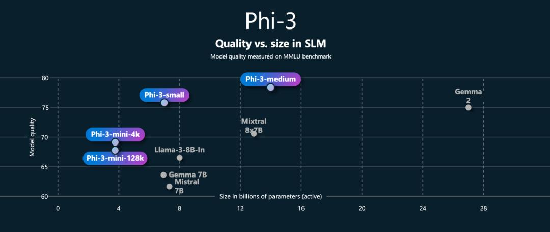 Phi-3 小模型的参数大小与相对质量 |图片来源:微软