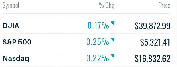 截至收盘,道指涨幅为0.17%;纳指涨幅为0.22%;标普500涨幅为0.25%。