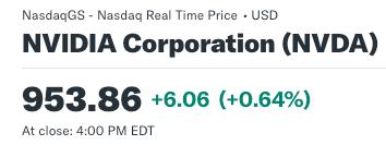 后来英伟达后盘中转涨,截至收盘微涨0.64%。