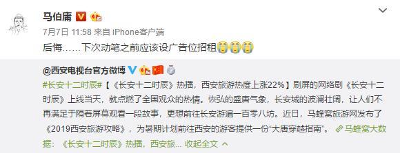 《长安十二时辰》不仅作为影视作品走红,还带火了主场景“长安”——西安。根据马蜂窝旅游网发布的数据,《长安十二时辰》播出期间,西安的旅游热度上涨了22%,剧名更是被网友戏称为“西安24小时”。连原著作者马伯庸都惊呼:“后悔……下次动笔之前应该设广告位招租”。一部热播剧的话题和超高收视率,对于西安形象、西安历史文化的宣传,起到了一个巨大的推动作用。