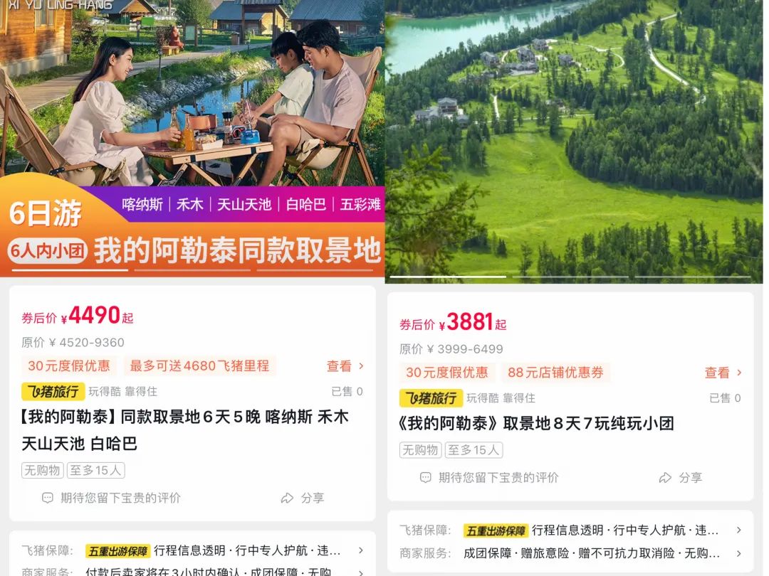 文娱价值官登录平台发现,以“我的阿勒泰取景地”为噱头的旅游综合项目陆续推出,而围绕阿勒泰旅游相关的搜索,已经超出往年同期5倍,飞往阿勒泰的机票预订量环比上周增长超50%,租车预订量环比上周增长近1倍。