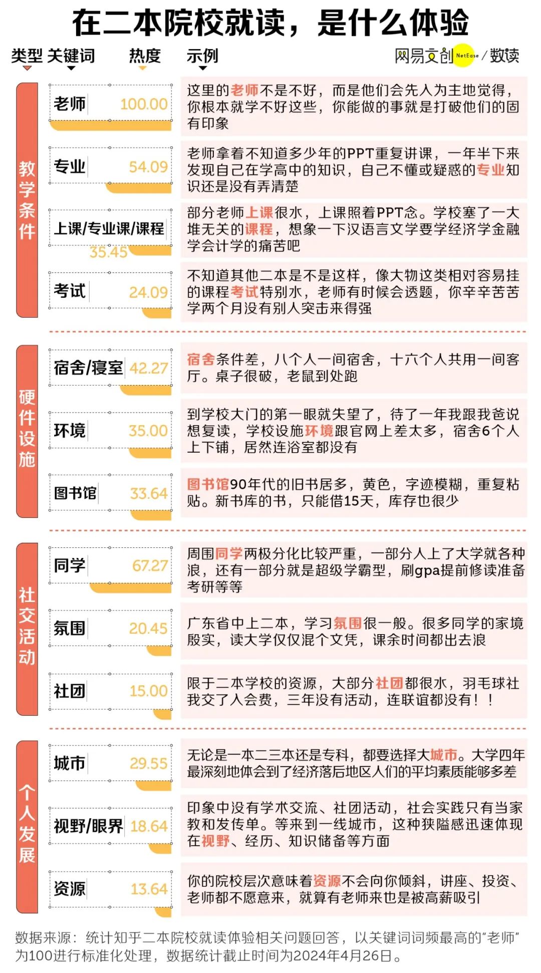 在流量时代,高学历标签更容易抓住人的眼球,例如 985 毕业生“逆向考研”“上岸火化工”等一举一动都成为社会舆论的焦点,但最常见的二本学生却成了沉默的大多数。