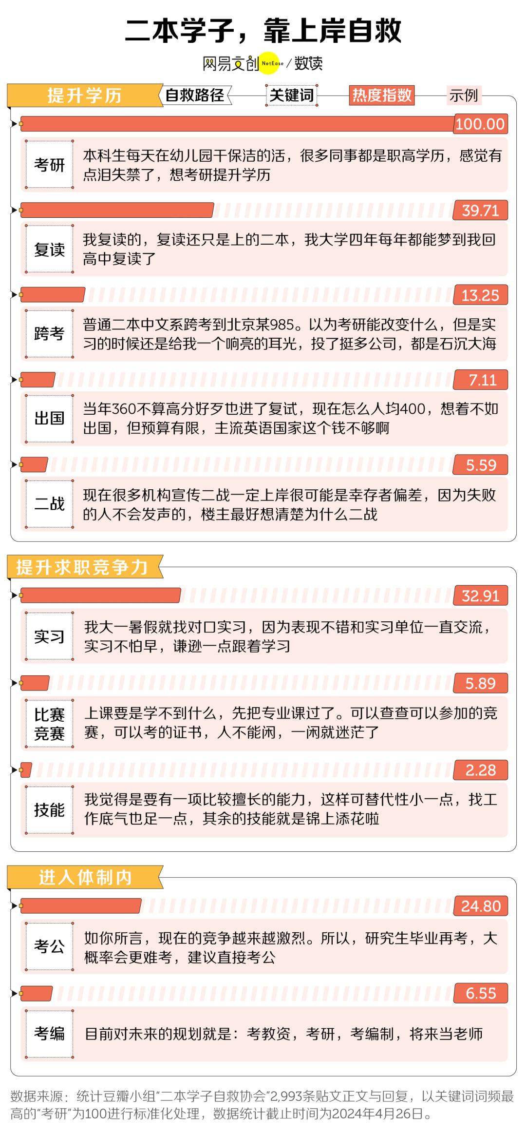 在豆瓣“二本学子自救协会”中,有五万多名二本学生正在自救中。上岸,是他们脱离苦海的希望。大多数人的岸是继续升学,走进更好的大学,其他人的岸是找到满意的工作,过上体面舒适的人生。