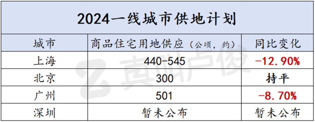 楼市健康如上海,2024年也减少了土地出让计划 。