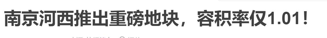 在被誉为南京豪宅板块聚集地的河西新城,首次推出容积率低至1.01的低密住宅用地。