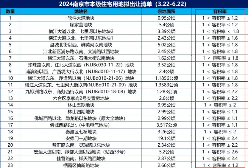 南京在今年公布的市本级住宅供地拟出让清单的23幅地块里,就有17块地的容积率低于2。