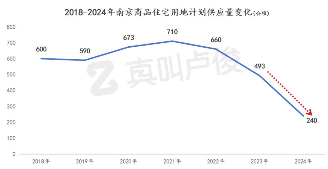 从2021年开始,南京的商品住宅供地计划,就开始连年减少 。