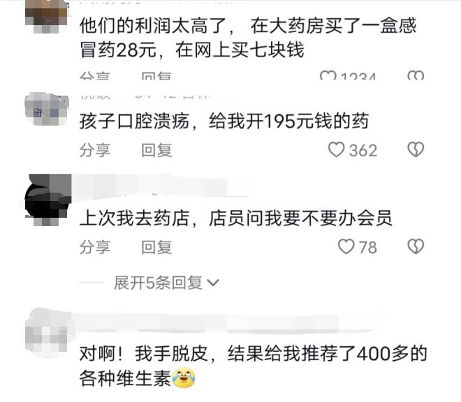 “药店开得这么多,药价却不便宜”“药店药卖得贵,利润肯定很高”“线下比线上感冒药贵一倍”。