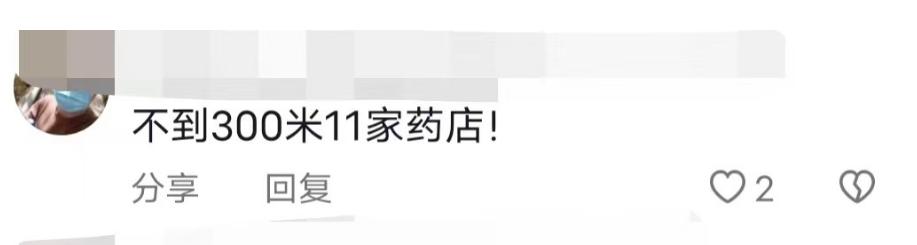 一条500米长的街道能开7家药店,药店数量最多的广东,还有“药店一条街”,300米之内开店11家,比奶茶店还多。