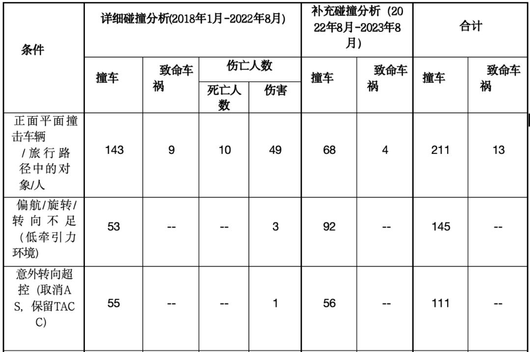 另外,NHTSA还通过分析了缺陷调查办公室(ODI)收集到的2022年8月至2023年8月发生的510起特斯拉事故,为其评估增加置信度。