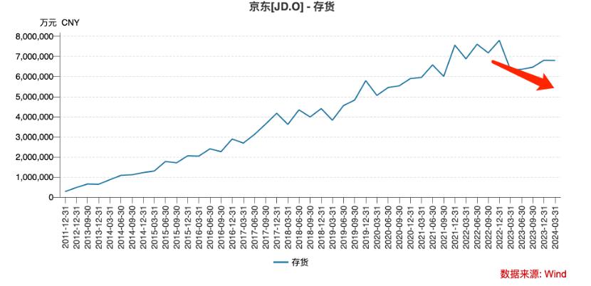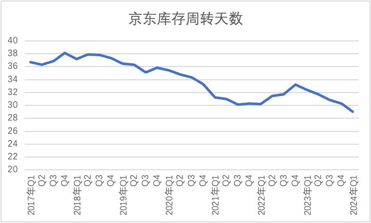 2023年之后,京东已经收缩了库存规模,2024年Q1较上年同期虽有所上涨但较之巅峰时仍相对保守。这确实体现了京东管理层的审慎,以控制库存规模为重要工作。
