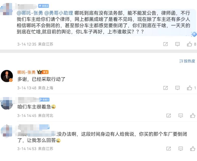 这操作,急得哪吒车主直接去质问张勇“哪吒到底有没有法务部”、“除了车主还有多少人相信哪吒不会倒闭”!