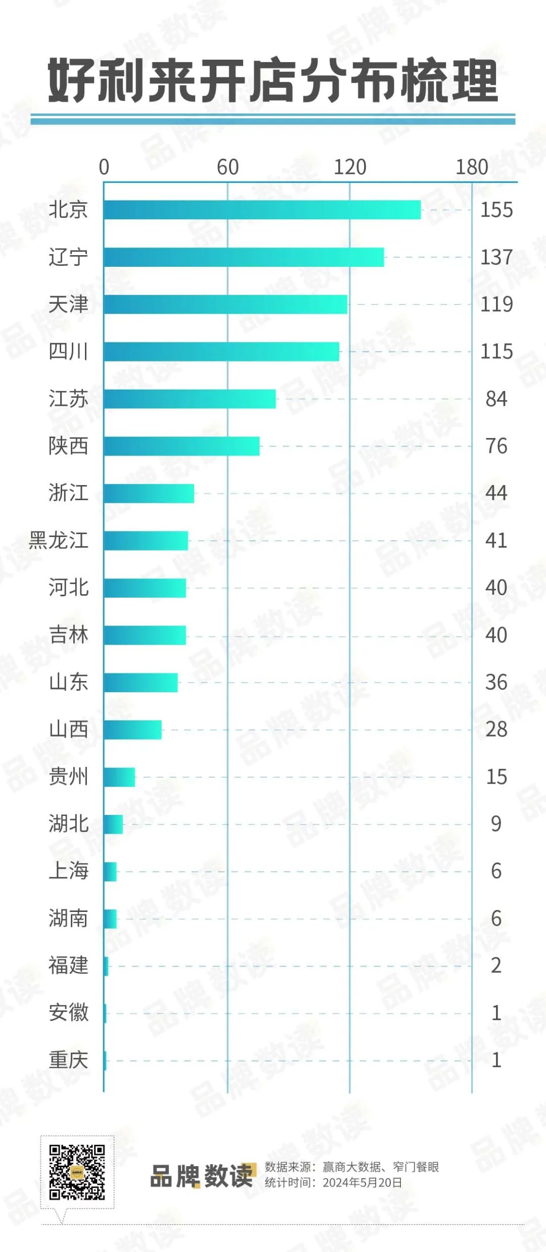 品牌数读梳理了好利来目前的开店布局,可以看到,华北和东北是好利来重仓的区域,其中北京、辽宁、天津门店破百,西南地区以四川为核心门店数也超过百家。