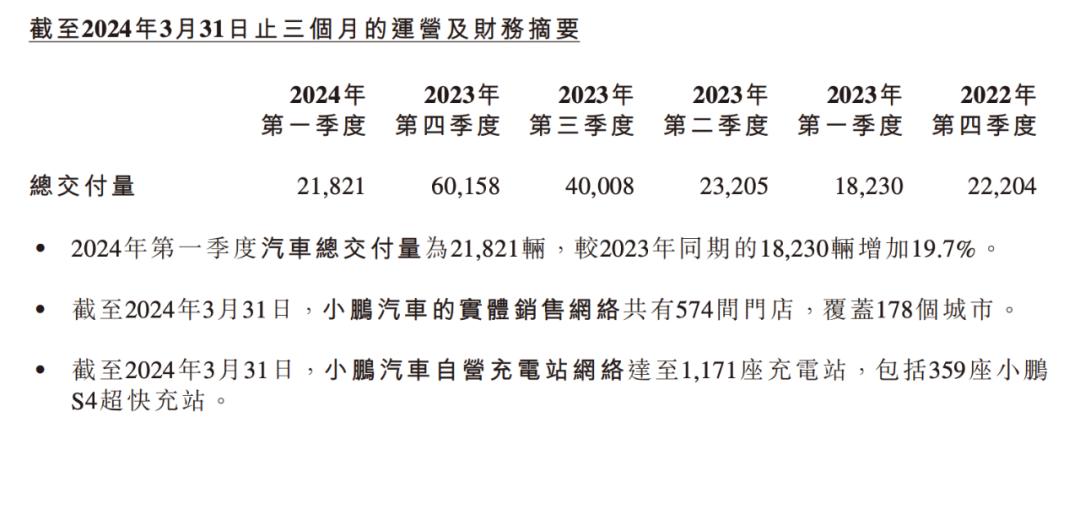 小鹏汽车第一季度交付量,图源小鹏汽车2024一季度财报