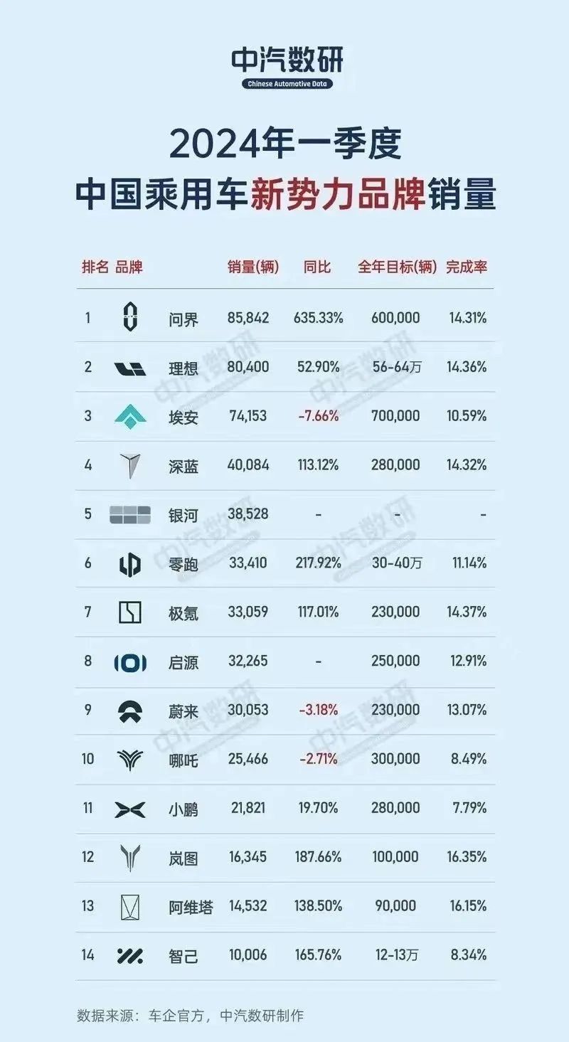 从市场份额来看,小鹏面临的竞争压力不小。据中汽数研统计,2024年一季度新势力品牌销量中,小鹏位居第11位,情况并不乐观。