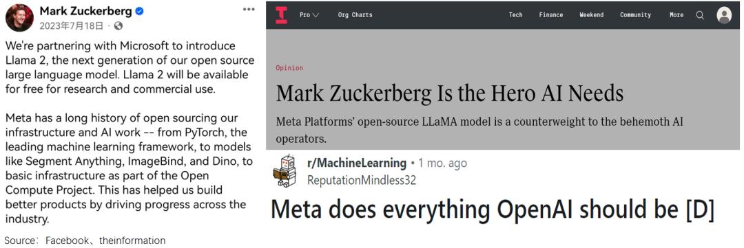 媒体们一反常态,将扎克伯格形容为“AI所需要的英雄”;网友们涌到他的帖子下留言,建议Meta更名为OpenAI。