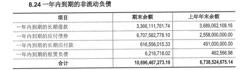 年报显示,2023年,天恒置业没有短期借款,但包括一年内到期的长期借款、一年内到期的应付债券在内的短期有息负债100.74亿元。