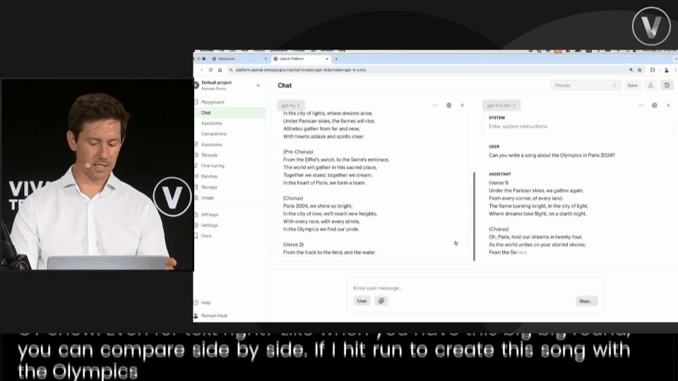 我非常高兴自己站在VivaTech的舞台上,并见到了一些非常棒的创始人和开发者。我很期待向他们展示一些现场demo,以及如何真正地将OpenAI的技术和模型应用到他们自己的产品和业务中。