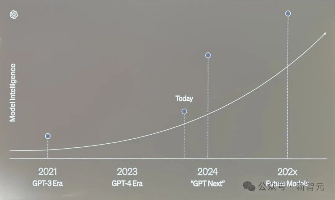 从展示的模型智能进化路线图中,可以确定的是,今年OpenAI一定会发布新一代旗舰模型。
